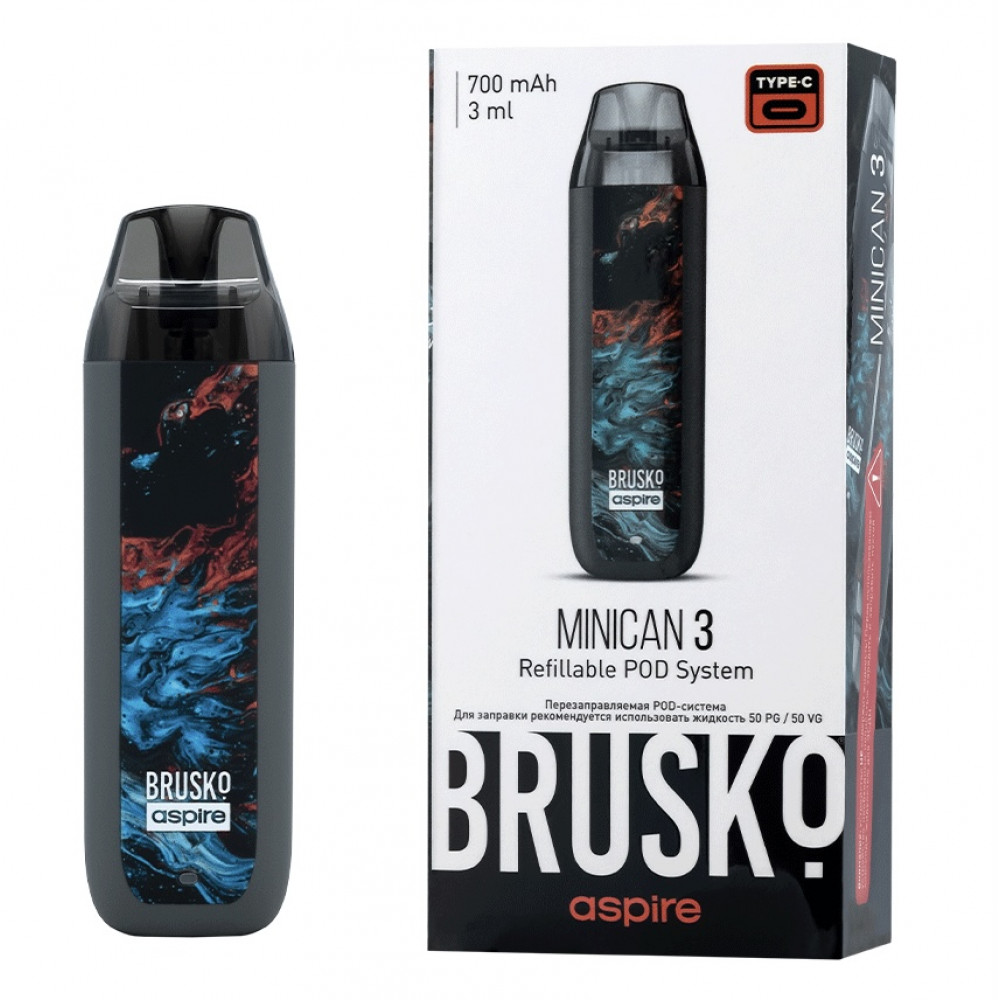 Перезаправляемая Под-Система Бруско Миникан 3 (Brusko Minican 3) 700 mah, Серый Флюид - купить в Новочебоксарске
