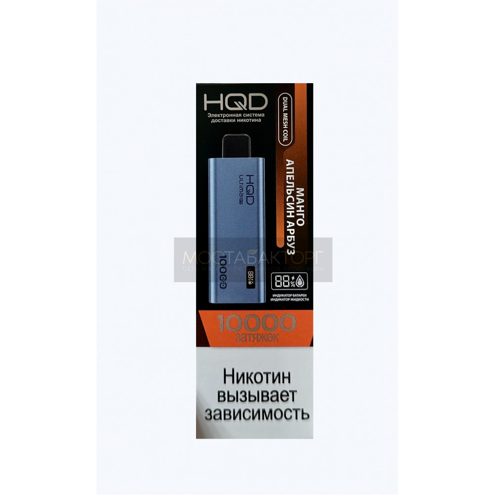 HQD видыULTIMA Pro (Ультима Про) HQD вкусыМанго Апельсин Арбуз HQD количество в блоке10 шт